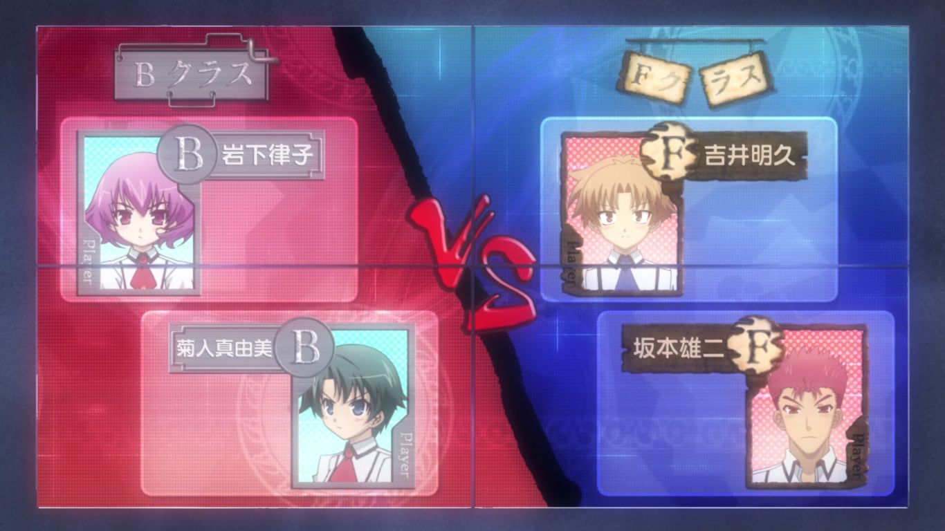 まず最初の明久たちの相手はEクラス…と思いきやいきなりBクラスの岩下律子と菊入真由美の強敵に変更となり、困惑する明久。