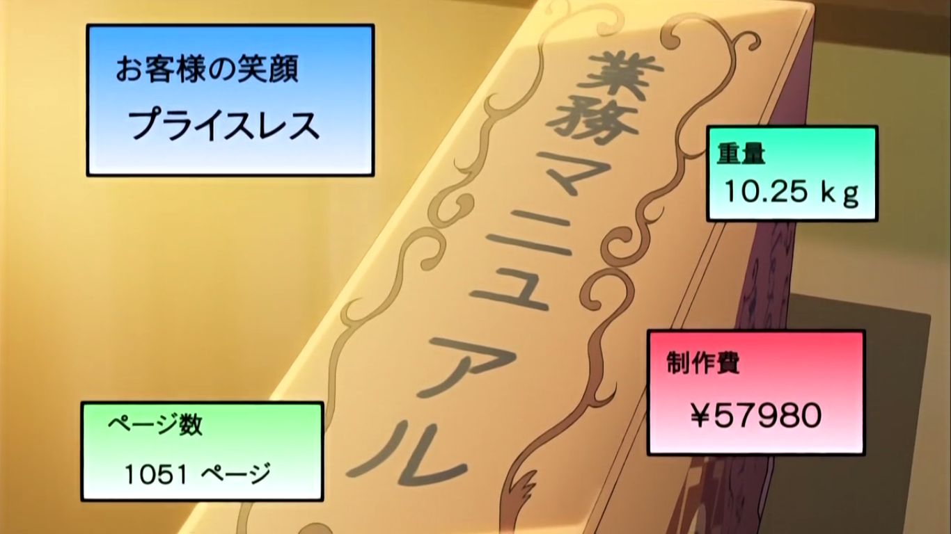 お客様の笑顔プライスレス。日和子の指導はこれだけで、この内容を全て暗記するようにと命じるとそのまま何も教えずに立ち去ってしまいました。