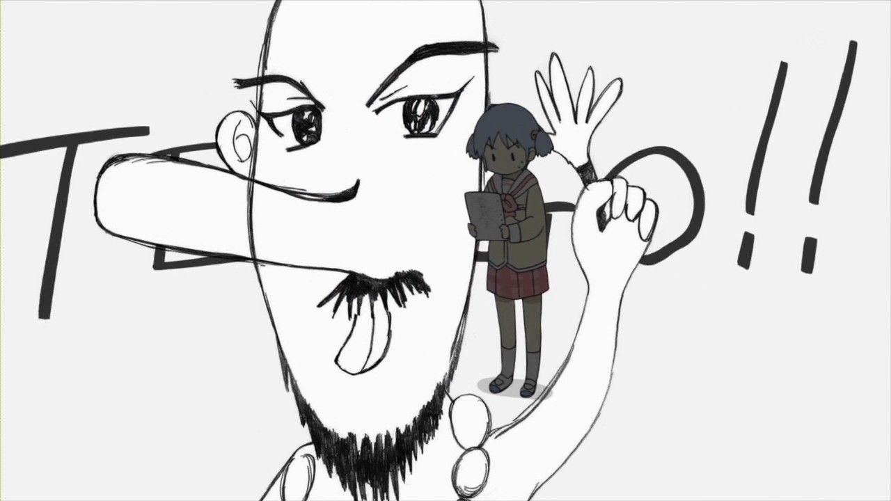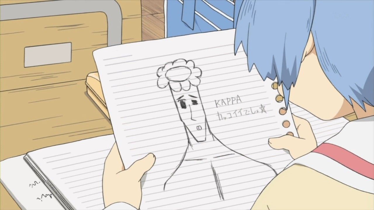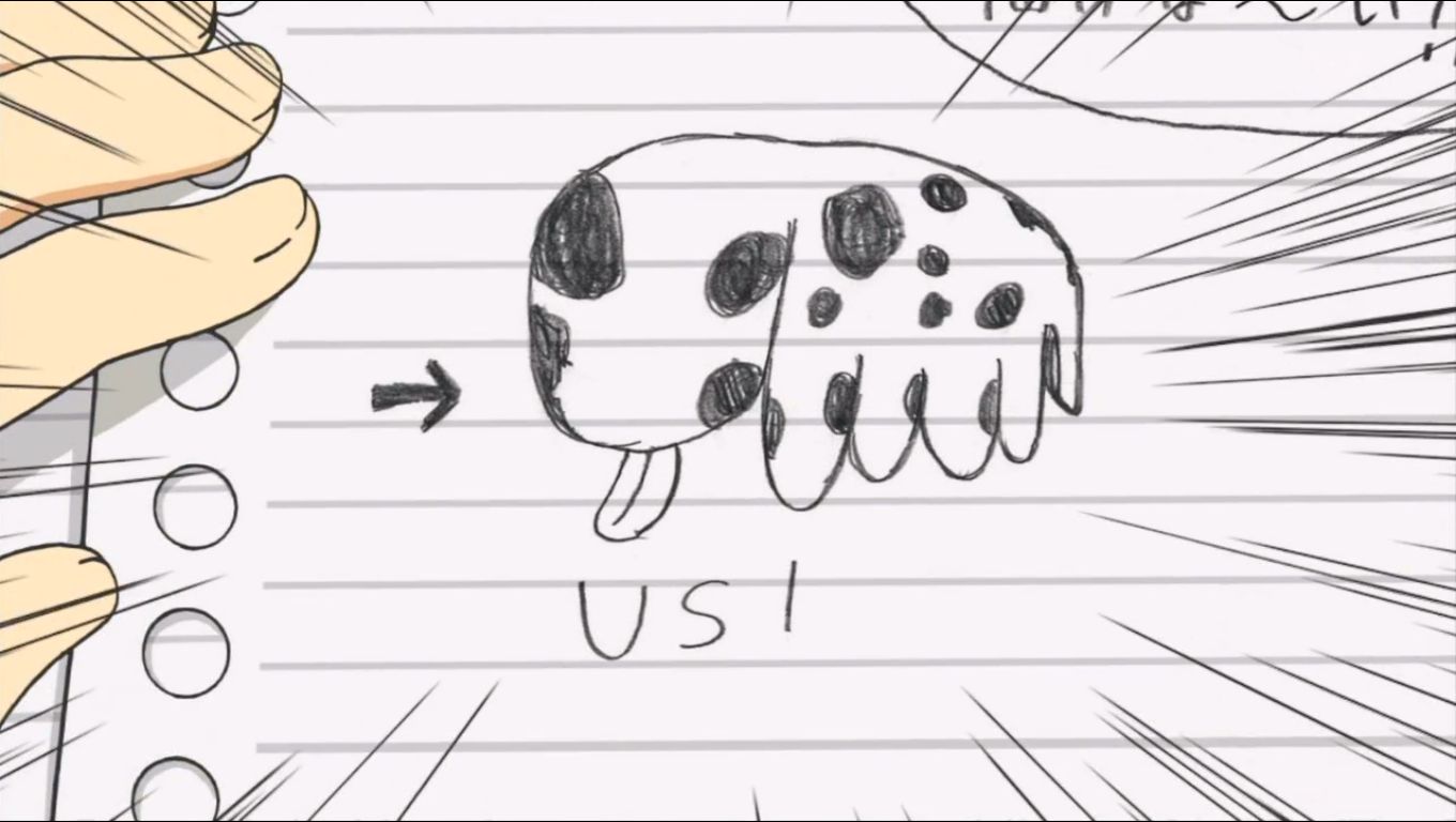 授業中。なんとなく落書きをしていたゆっこは、偶然にも自信作が出来上がりそれをみおに見せることに。(なんだこりゃ)みおも呆れるその絵は