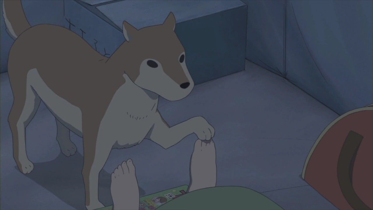 彼女が飲んでいたのはサイダーでした…。結局散々になってしまったキャンプ。寝ているゆっこを励ましたのは、突然現れた犬でした…。