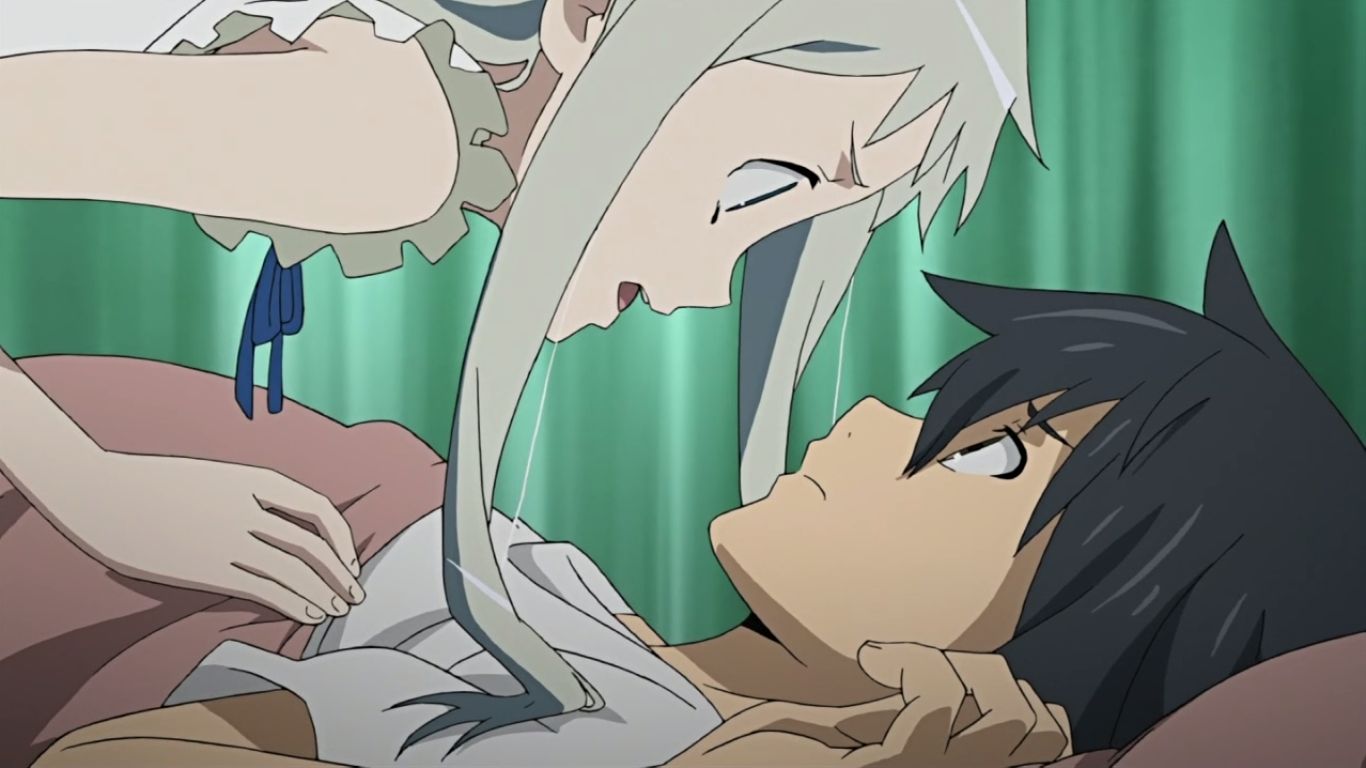 それをめんまが引き留め、揉み合いになって転ぶじんたんに「宿海……何してるの、さっきから……?」とあなるの方から声をかけてきました。
