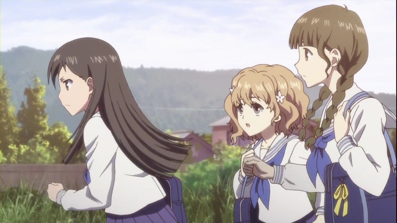 そして帰り道。湯乃鷺駅に着くや否や、民子は走って旅館へと向かいます。遅れれば怒られるらしく、菜子と緒花もそれについていきますが…