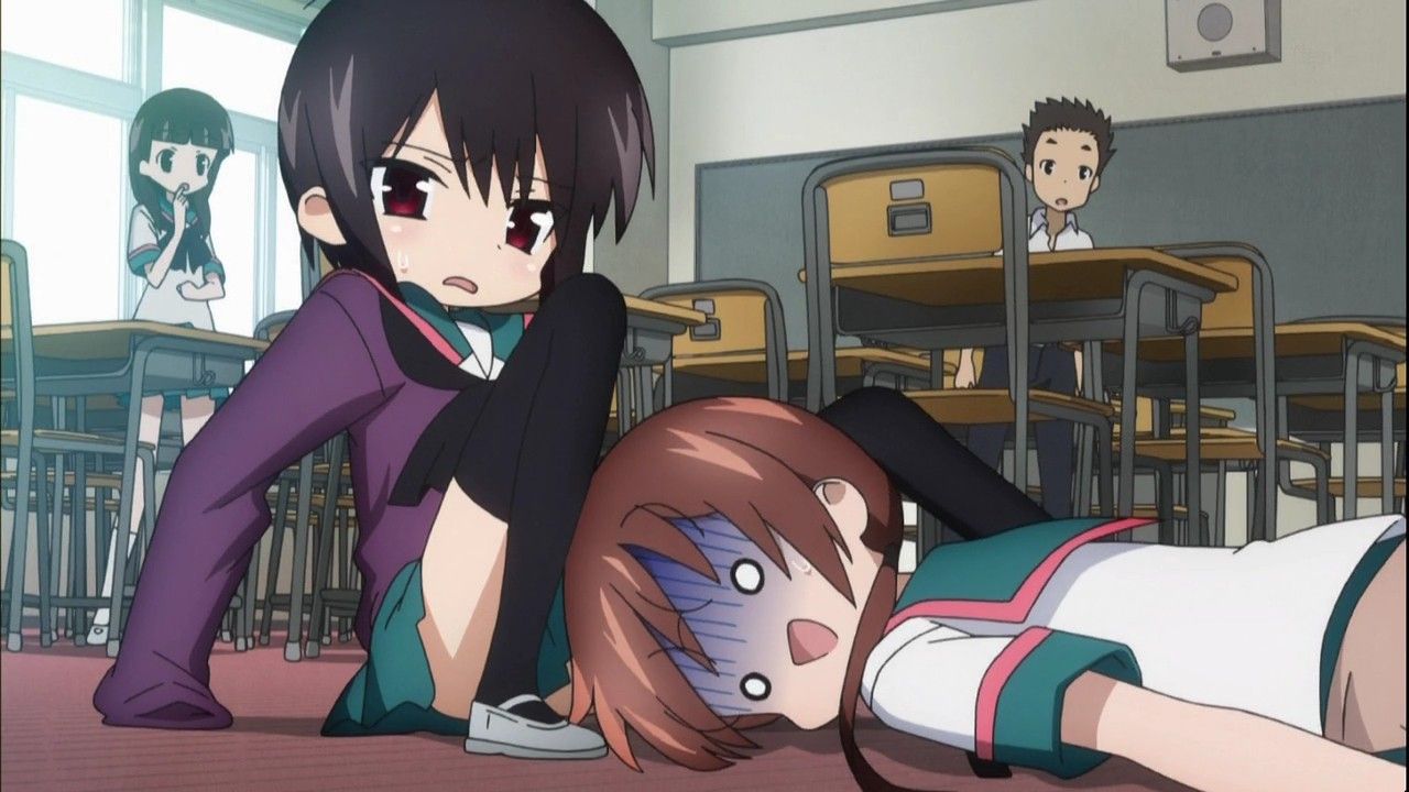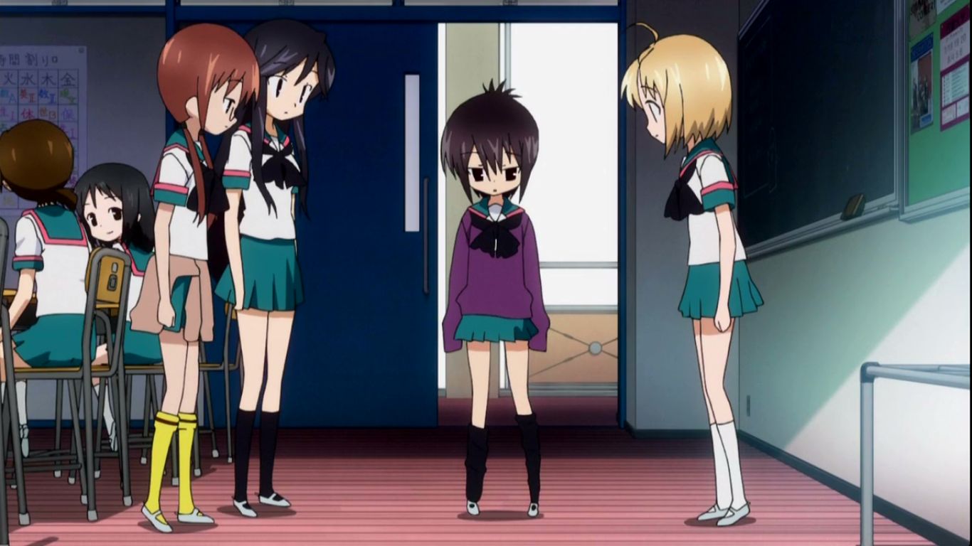 しかしそれはルーズではなく新しいニーソ。単に落ちやすいだけだったようで、「どんだけ細いんだお前…」と驚くナギ。ストッパーは効果がなく