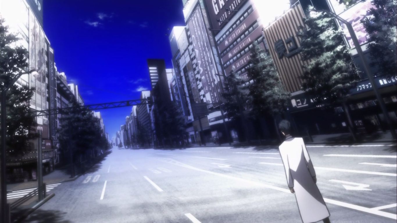 謎の現象に襲われた岡部が辺りを見渡すと、先ほどまであちこちに大勢の野次馬がいたのに、その場には誰もいなくなっていました。