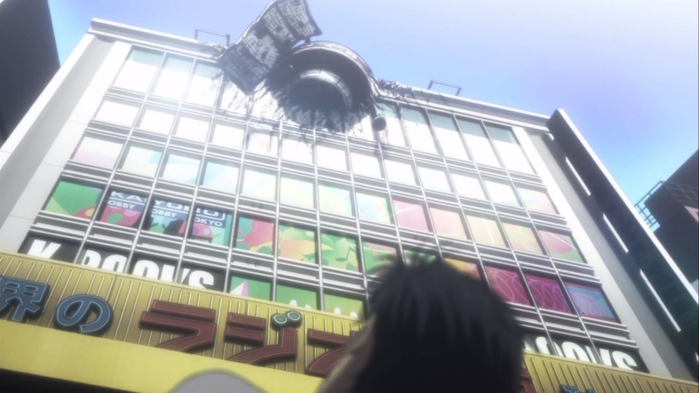 テレビに写るのは建物に突っ込んだ人工衛星と思われる落下物。岡部たちは、まゆりとともに会見を見るためにラボを出たはずなんですが……