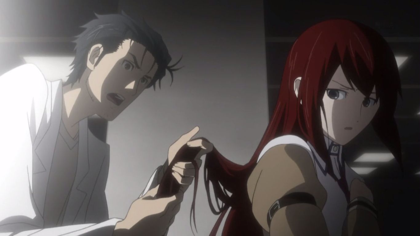 3時間前、ラジ館で刺されたはずの牧瀬紅莉栖がこうして何事もなく現れたことに驚く岡部。実体があるかを確かめる為に、思わず生きていたクリスに