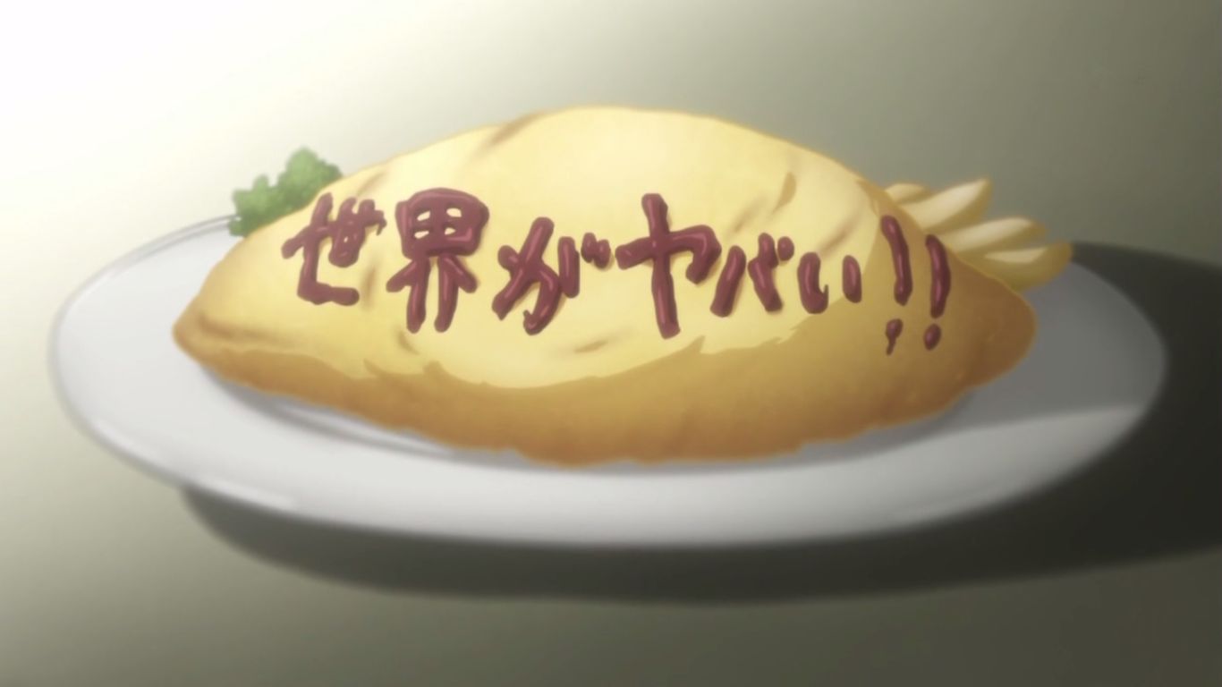 そこにフェイリスが注文のオムライスを持ってやってきます。ケチャップで書かれていた"世界がやばい!!"の文字。その言葉に何かを感じる岡部。