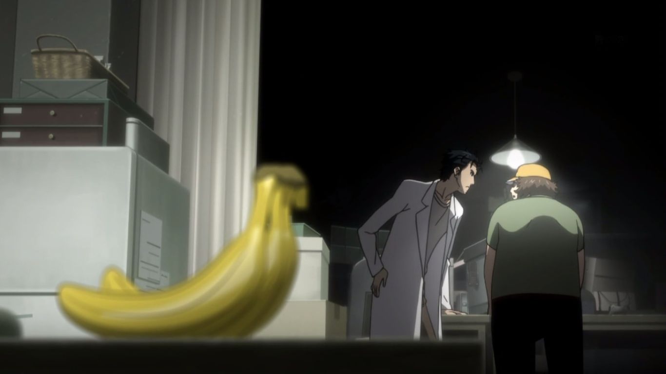 ラボに戻った二人は改めてゲルバナの実験をおこないます。大学の研究室で分析を行った結果、ゲルバナは分子レベルでズタズタだったと言う岡部。