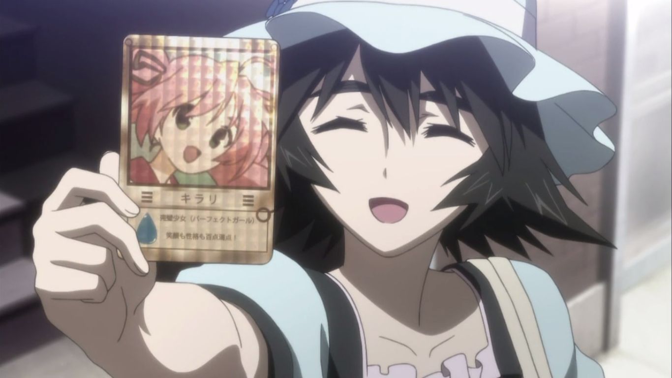 同じビルにいるんだし、まゆりは鈴羽に、自分が集めている雷ネットカードのゴールドをもらったようで嬉しそうにそれを岡部に見せてあげます。