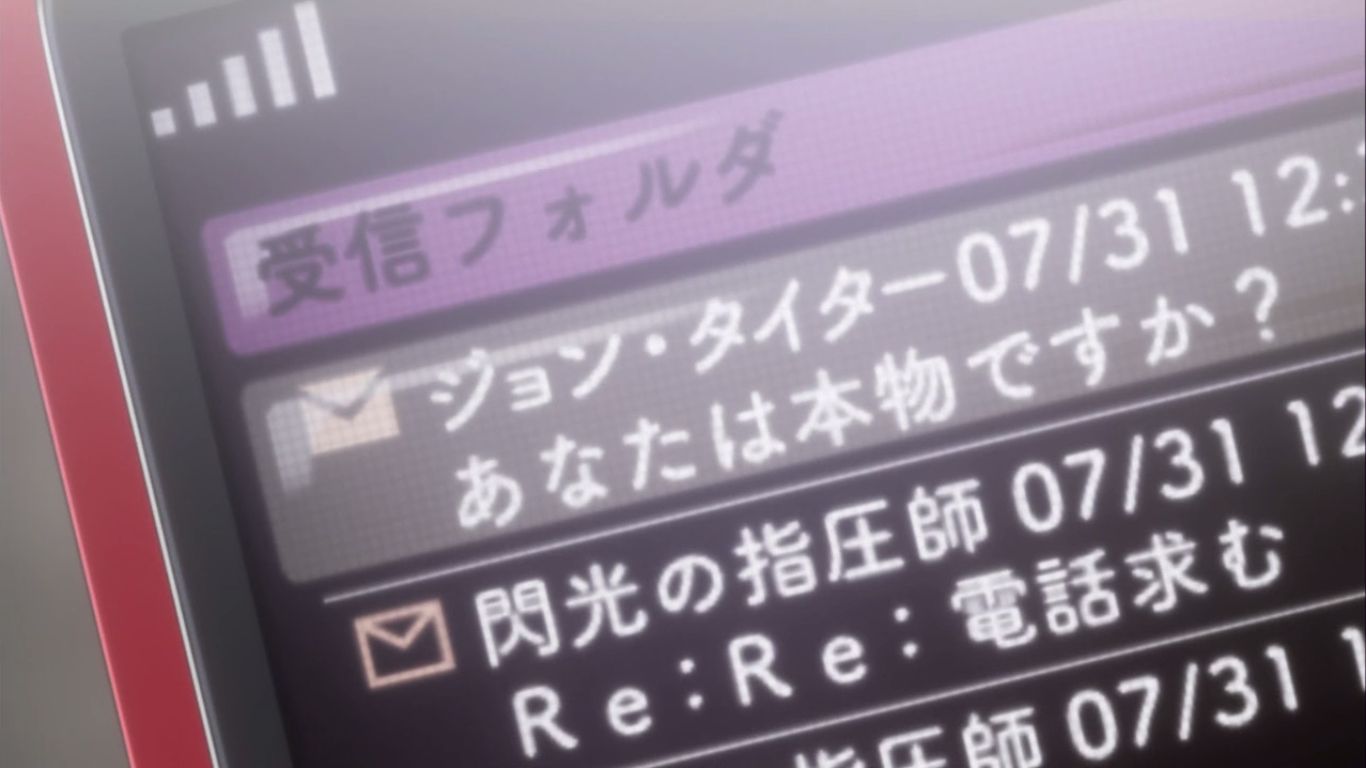 「しつこい!」と呆れる岡部。続いてまたしても彼女からメールが…と思いきや『あなたは本物ですか?』と、それはジョン・タイターからのもの。