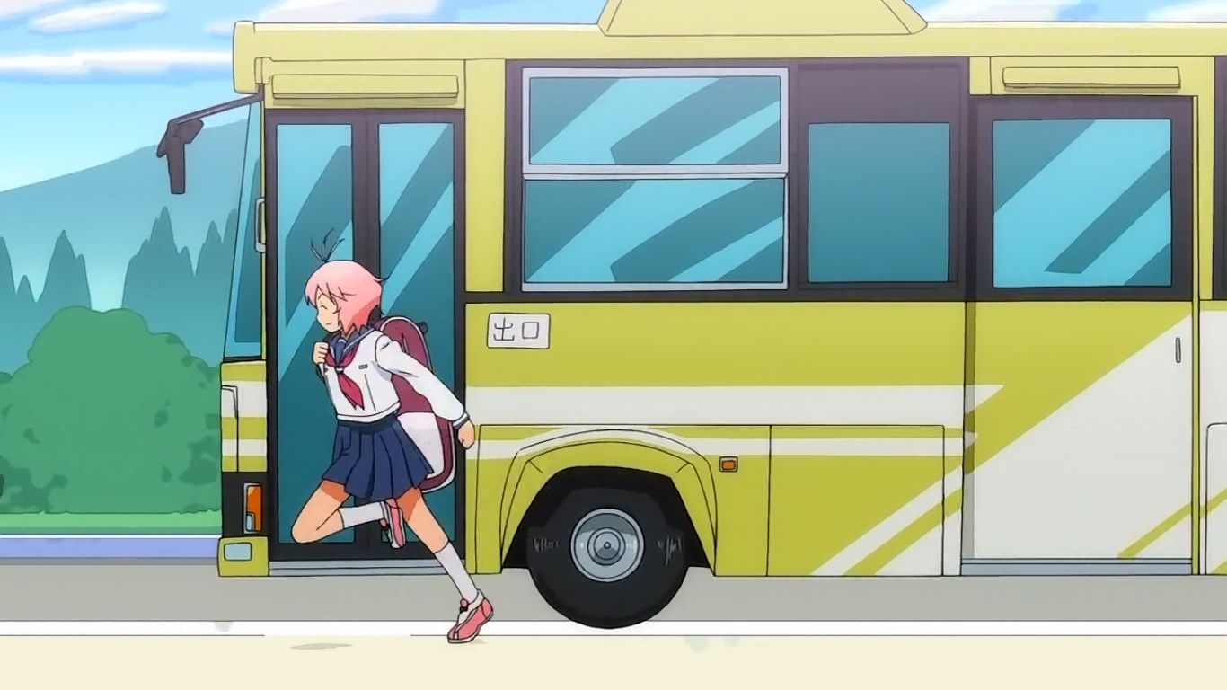 余裕そうに日の丸を振る彼女ですが、直後にバスが停留所に停まってしまい、バスから降ろされて大会まで走り込みだろうと怒られます。